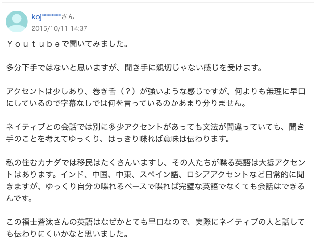 「カタカナ英語ではない!」、「一般のレベルからすれば十分キレイ」と