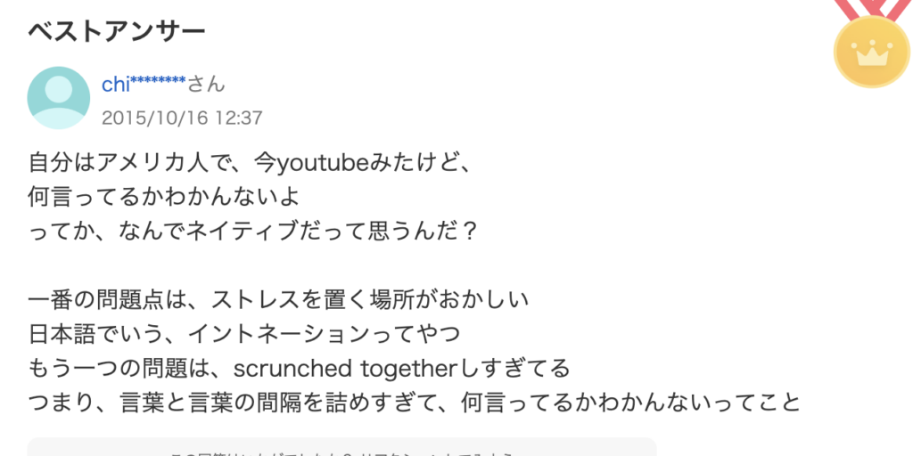 ネイティブの方からのご指摘が厳しいものでした。